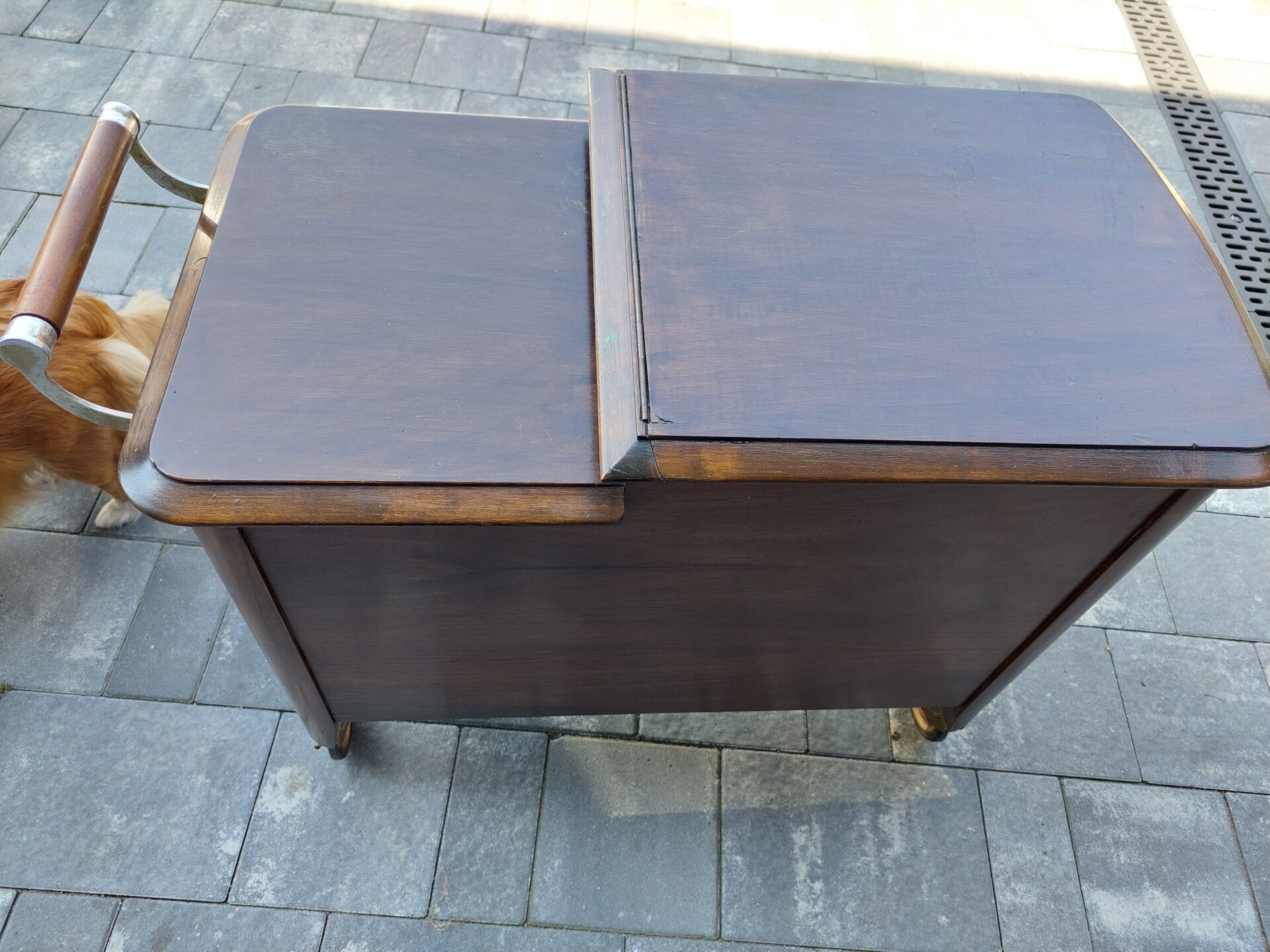 Stary barek na kółkach art deco. Posiada drobne ślady użytkowania. Bez robaków. Szkło bez uszczerbień.