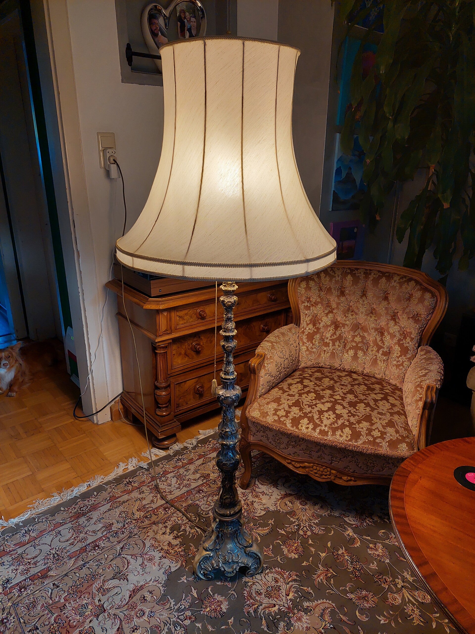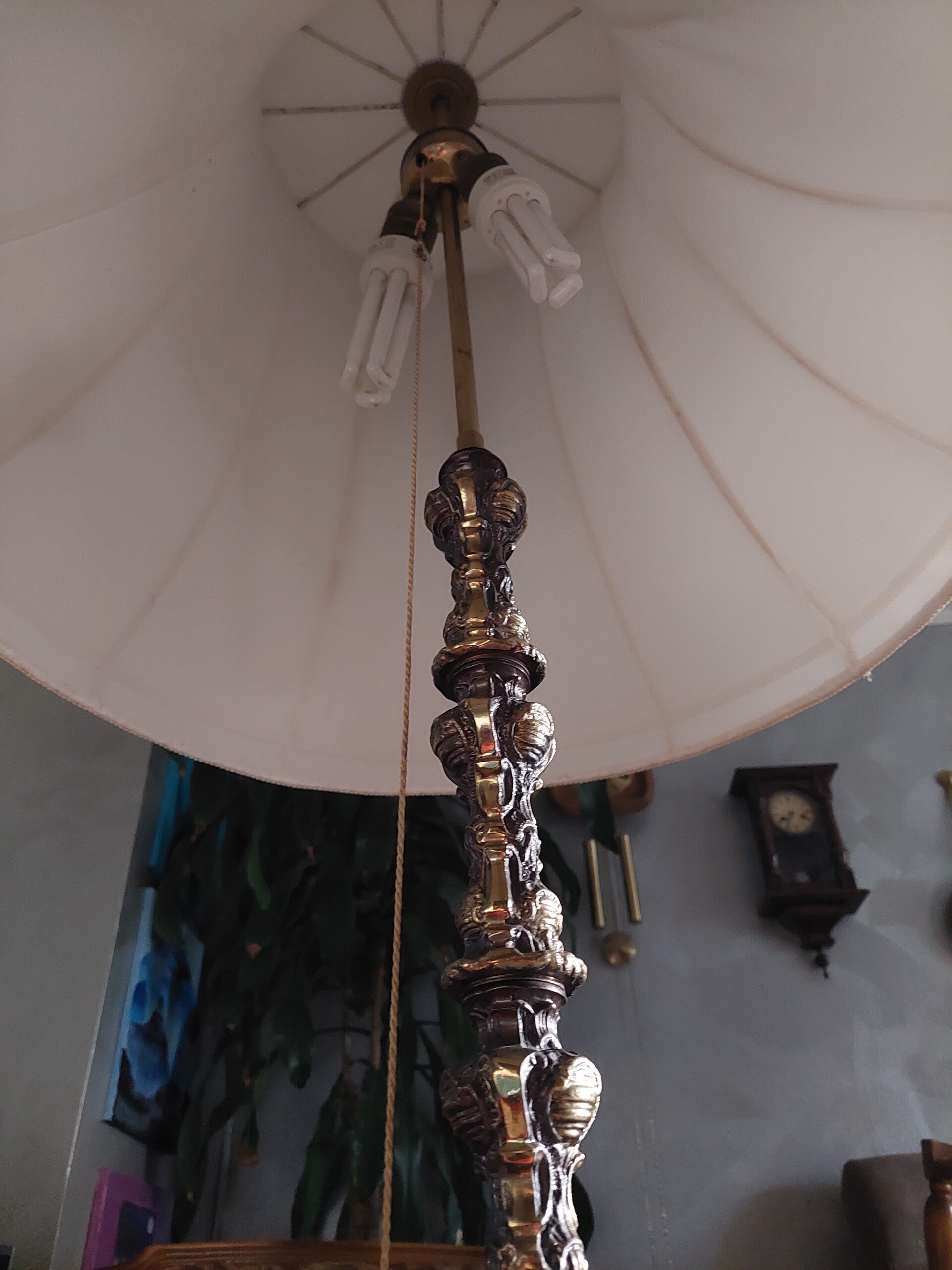 Piękna lampa podłogowa o wysokości ok 163 cm. Na bardzo ładnej mosiężnej nodze. Bardzo ciężka. Sprawna.